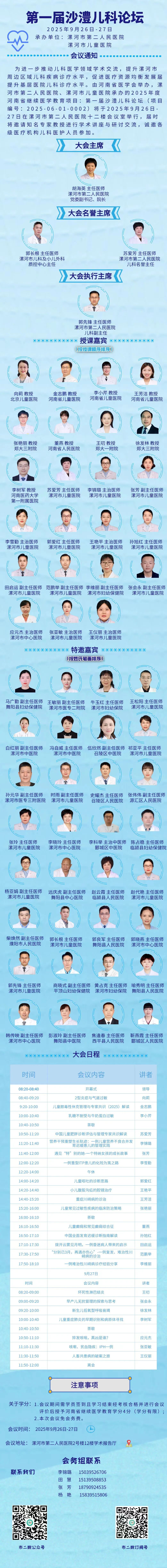 為進(jìn)一步推動(dòng)兒科醫(yī)學(xué)領(lǐng)域?qū)W術(shù)交流,提升我市及周邊區(qū)域兒科疾病診療水平,促進(jìn)醫(yī)療資源均衡發(fā)展,提升基層醫(yī)院兒科診療水平。由河南省醫(yī)學(xué)會(huì)主辦,漯河市第二人民醫(yī)院、漯河市兒童醫(yī)院承辦的2025年度河南省繼續(xù)醫(yī)學(xué)教育項(xiàng)目:第1屆沙澧兒科論壇 (項(xiàng)目編號(hào):2025-06-01-0002)學(xué)術(shù)會(huì)議將于2025年9月26-27日在漯河市第二人民醫(yī)院舉行,現(xiàn)將有關(guān)事項(xiàng)通知如下: