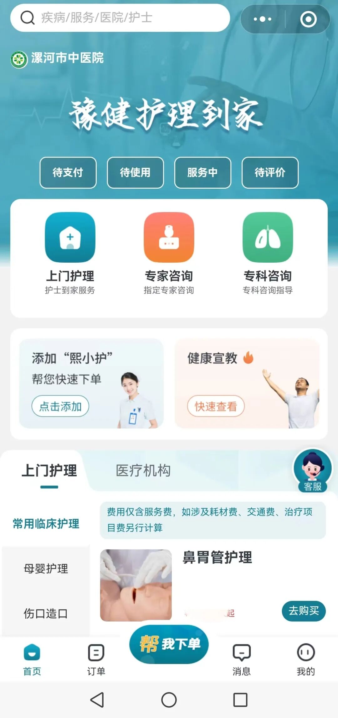 訂單確認(rèn): 支付訂單后,等待護(hù)士接單