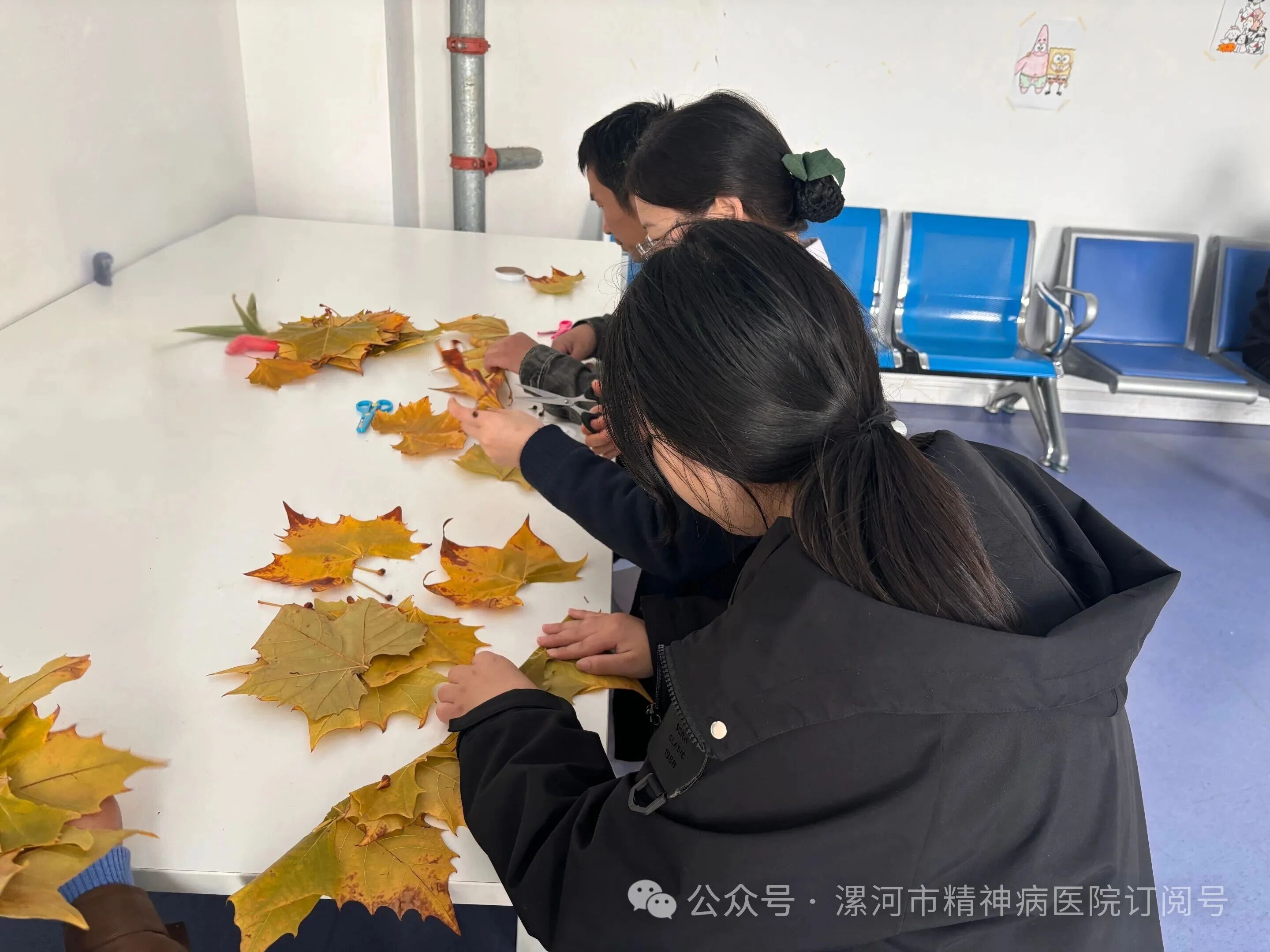 11月10日,漯河市精神病醫(yī)院心身醫(yī)學科的候診室里,落葉成了特殊的“療愈材料”。