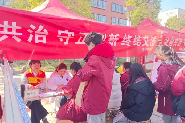 為深入貫徹落實國家關于艾滋病防治工作的指示精神,提升青少年學生對艾滋病的科學認知,增強自我防護意識與社會責任感,2025年11月28日,在我國第38個 “世界艾滋病日”來臨之際,漯河市中醫(yī)院疾控科前往漯河市第一中等專業(yè)學校(廬山路校區(qū))進行了以 “社會共治,守正創(chuàng)新,終結艾滋”為主題的義診宣傳活動。