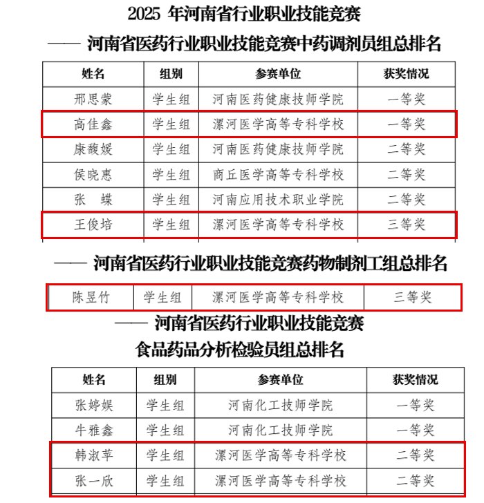 漯河醫(yī)專(zhuān)在河南省醫(yī)藥行業(yè)職業(yè)技能競(jìng)賽中榮獲一等獎(jiǎng)