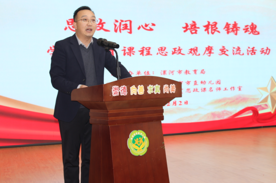霜染初冬凝暖意,教潤童心啟新章。為深入貫徹落實立德樹人根本任務(wù),探索符合幼兒年齡特點的課程思政模式與方法,提升幼兒園教師開展課程思政的能力與水平,增進園所間的交流學(xué)習(xí),12月2日上午,漯河市學(xué)前教育課程思政觀摩交流活動在市直幼兒園舉行。漯河市教育局黨組成員、副局長聶廣橋出席。市教育局秘書科科長馮文權(quán),市教育教學(xué)研究室政治教研員、市大中小學(xué)思政課一體化建設(shè)委員會秘書長夏忠新,市屬幼兒園主管園長、骨干教師;市幼兒園領(lǐng)航工作室共同體單位、市直幼兒園教育集團主管領(lǐng)導(dǎo)、骨干教師以及市大中小學(xué)思政課名師工作室主持人參與了本次活動。