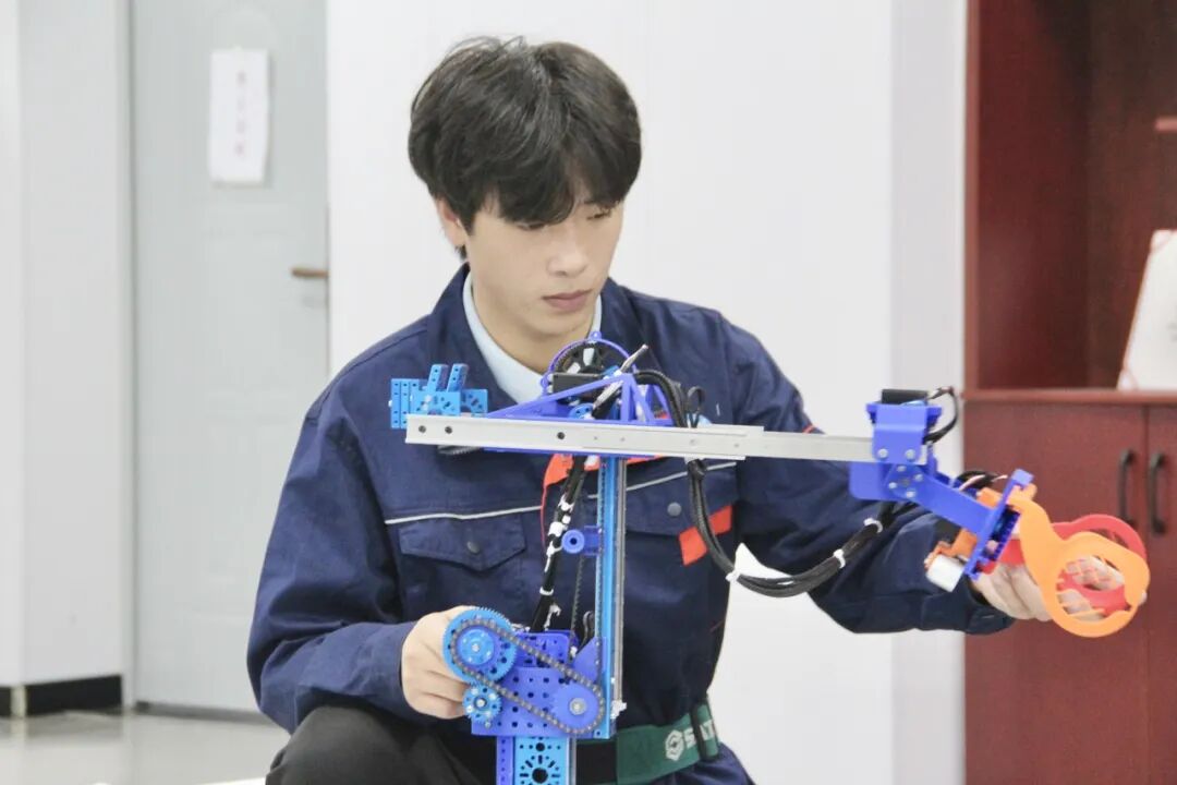 每天清晨6:30,當(dāng)校園還沉浸在晨光中,楊奇瑞已經(jīng)開始準(zhǔn)備新一天的訓(xùn)練。晚上11點(diǎn),甚至凌晨,他才拖著疲憊的身體回到宿舍;可第二天清晨,他又準(zhǔn)時(shí)出現(xiàn)在實(shí)訓(xùn)室,繼續(xù)調(diào)試、編程、組裝、測試……這樣的節(jié)奏,他堅(jiān)持了整整一年多。