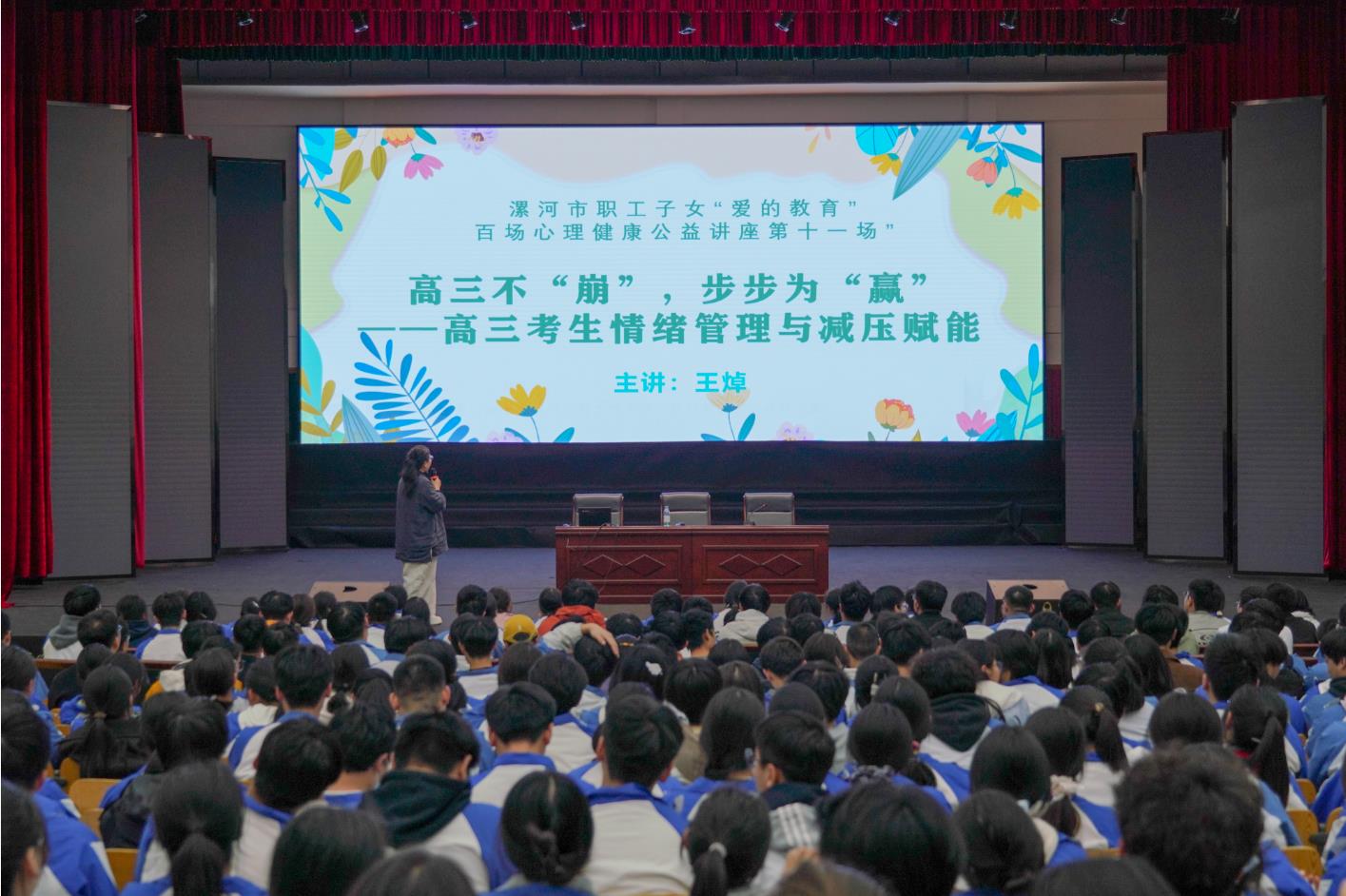 為切實(shí)加強(qiáng)青少年心理健康教育,幫助高三學(xué)生緩解備考?jí)毫?、科學(xué)管理情緒,以積極心態(tài)迎接高考挑戰(zhàn),近日,漯河市職工子女 “愛的教育” 百場(chǎng)公益講座第十場(chǎng)走進(jìn)漯河實(shí)驗(yàn)高中,為正處于緊張備考關(guān)鍵期的高三年級(jí)全體學(xué)生,帶來了一場(chǎng)別開生面、內(nèi)容豐富的 “高三不‘崩’,步步為‘贏’—— 高三考生情緒管理與減壓賦能” 主題心理輔導(dǎo)活動(dòng)。