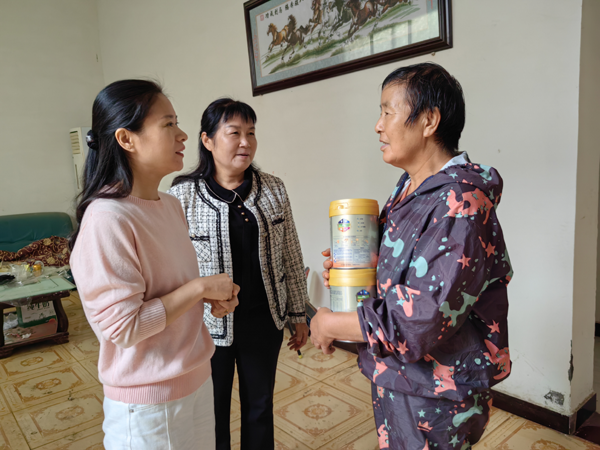 活動中,鎮(zhèn)婦聯(lián)工作人員與巾幗志愿者一同深入各村,走訪慰問了轄區(qū)7個困境兒童家庭。每到一處,李主席都與孩子監(jiān)護人親切交談,詳細詢問孩子們近期的生活狀況、身體狀況和學習情況,耐心傾聽他們的心聲和實際困難,并為孩子們送上了精心準備的優(yōu)質(zhì)奶粉,叮囑家長要科學喂養(yǎng),關注孩子的營養(yǎng)健康。